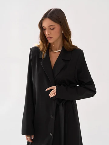 Women's single-breasted dress-shutter of medium length, with an exhausted collar and long sleeve, a vintage straight dress with a belt, clothing for weight ...