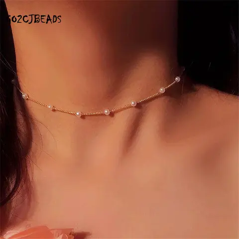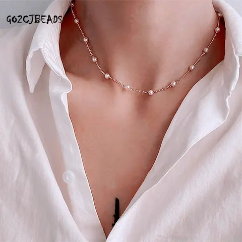 A pearl necklace for women, a fashionable chain for a collarbone, a gift for a girl, a simple decoration for a party, pearl necklaces from a bead ...