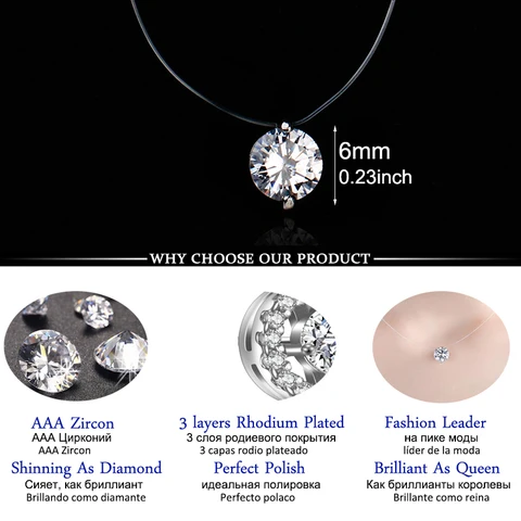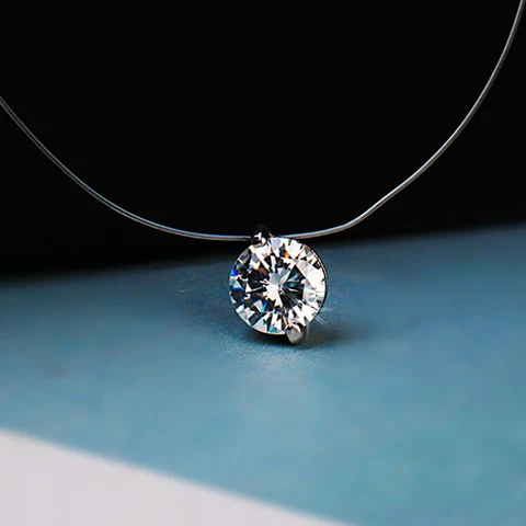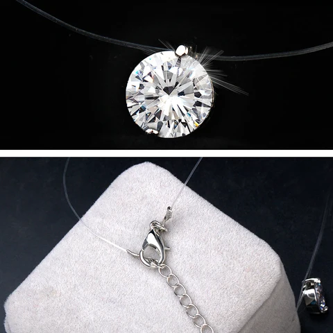 The novelty of the Korean women's necklace with round zirconium pendants, invisible transparent necklaces for fishing ...
