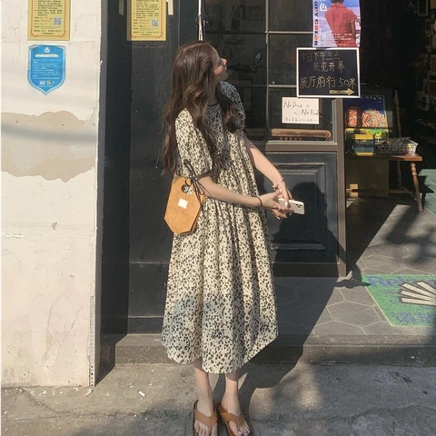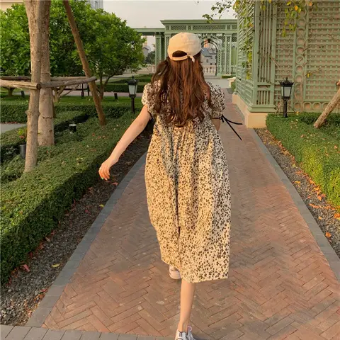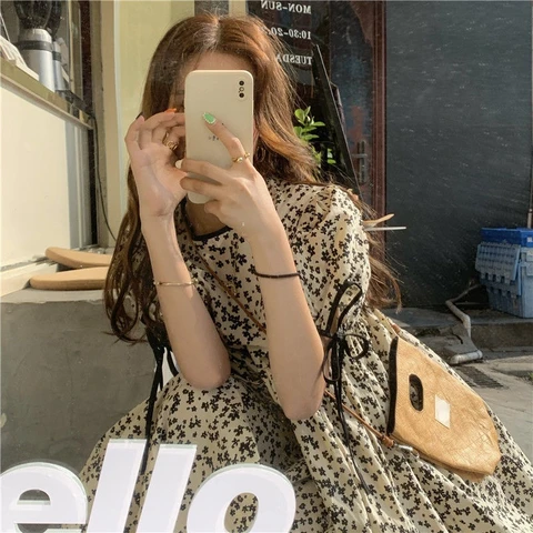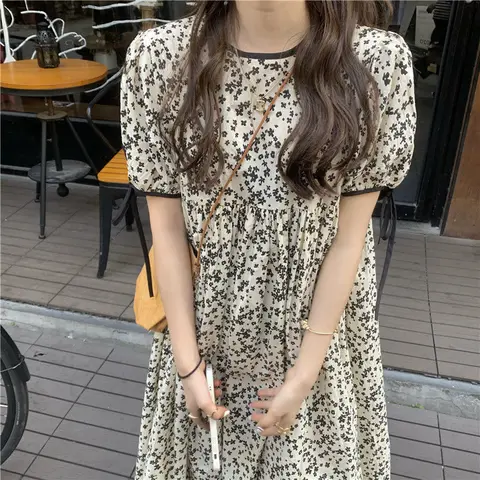 Women's short skirt with a round neckline and a high waist in the Korean style