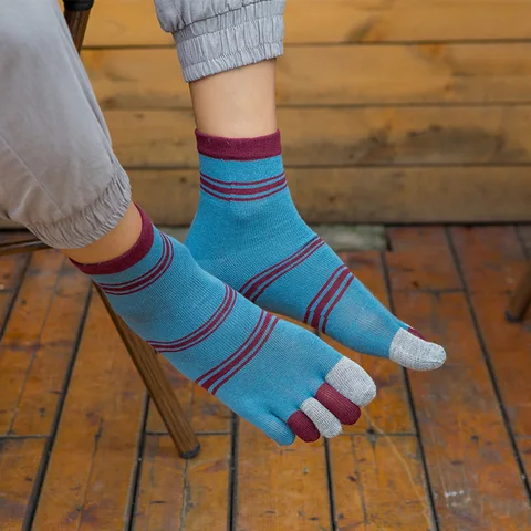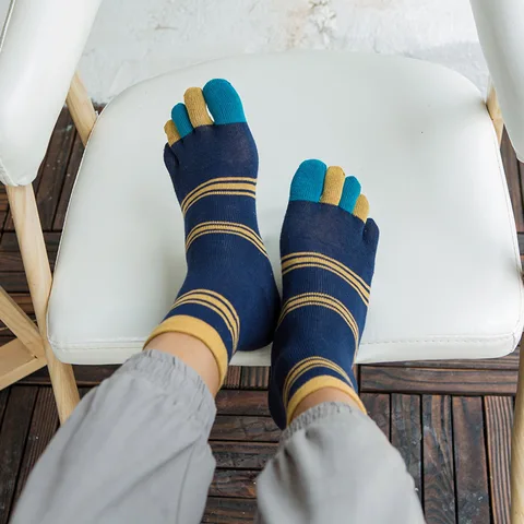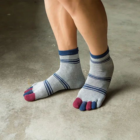 Men's socks are short from clean cotton, with fingers, multi -colored, striped, 5 pairs