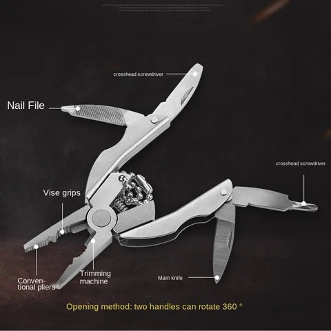 Portable pliers made of stainless steel, multi -tool: knife, keychain, screwdriver