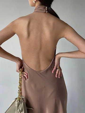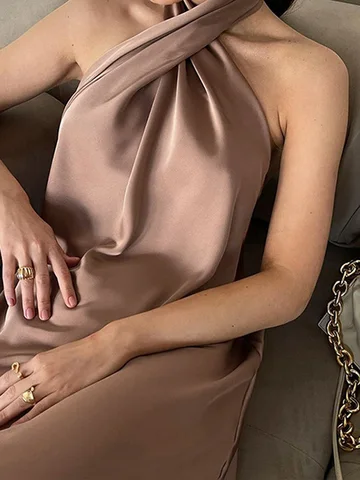 Satin satin satin, with a neckline and an open back, 2022, plain