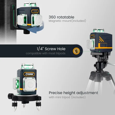 Self -envelope laser level with 12 lines, horizontal and vertical green beam OSRAM 360 with remote control