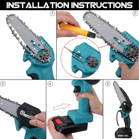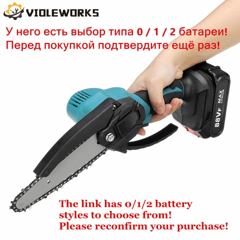 Electric chain saw, 6 inches, 3000 W, 88VF, with a battery of 0/1/2 pcs.