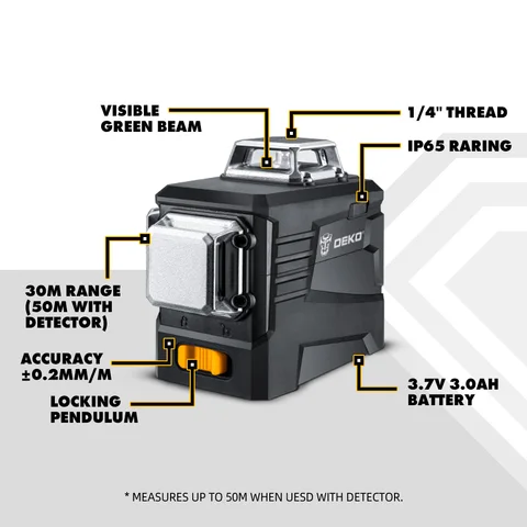 Laser level DEKO DKLLLLL12PB1/PB2, 12 lines, green laser, 360 transverse lines, horizontal/vertical, automatically leveling
