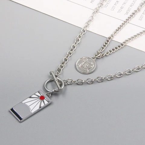 A necklace with an S-shaped suspension in the style of the “Demon”, a two-layer jewelry of an alloy, a neckre-chopper with a no yaiba chain Kamado tangger ...