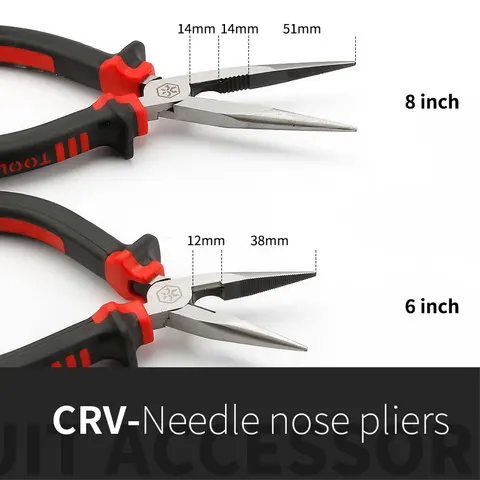 Crome pliers with vanadium coating, long pliers of 6/8 inch, 1 pc., Multifunctional hand tool with a two -color handle