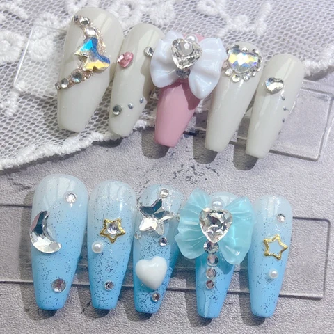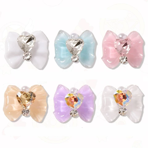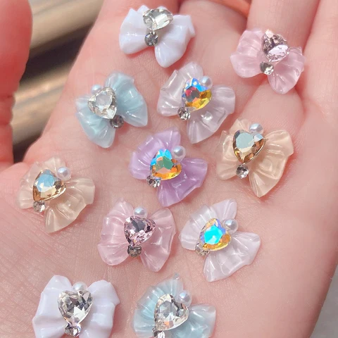 10 pieces.Japanese sailor tie-butterfly heart moon artificial nails 3d cartoon anime bow inlaid by pearls DIY Tips ...