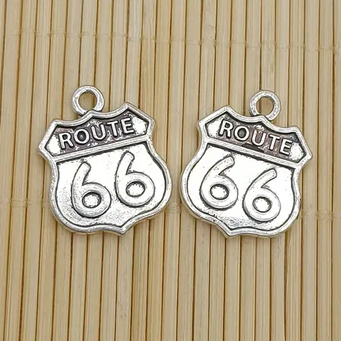 10 pieces.18x14 mm Antique silver color bilateral route 66 sign Suspension for self -manufacture of jewelry jewelry buckshots ...