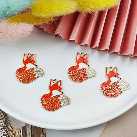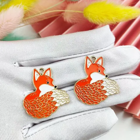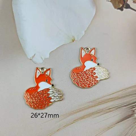 10 pieces.25x27 mm enamel fox charming jewelry accessories Bracelet necklace Suspension Suspension "Make yourself" gilded ...