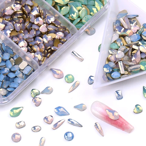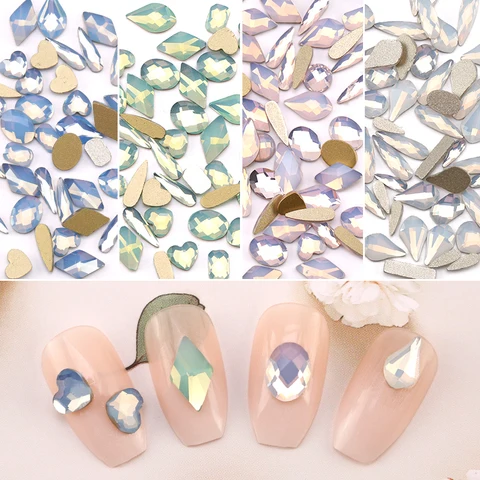 20 pcs Opal mixed forms pink/peridot/blue/white Flatback Crystal Stones for DIY 3D nail jewelry