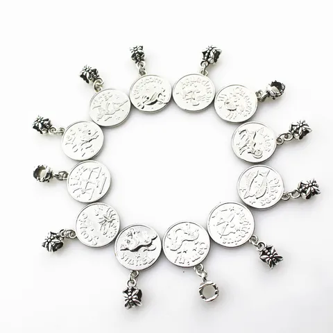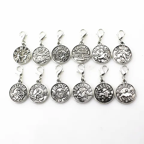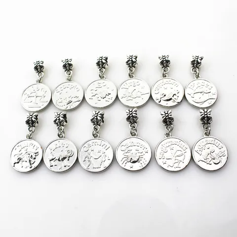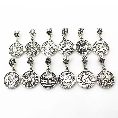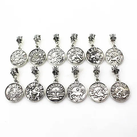 24 pcs.The assortment has 12 zodiac signs suspension fastener-carbine suspension macroporous charm Diy Bracelet Jewelry accessories floating charm