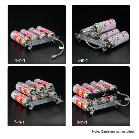 4 in 2 inches, a flexible hose with a thread, a separate type, an adapter for converting a gas cartridge into a camping plate