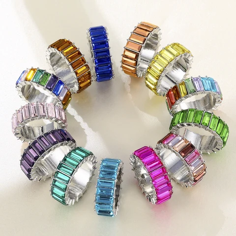 VG 6YM elegant rainbow ring multi -colored ring with crystals Eternity square Ring Baget Women's Wedding Jewelry in bulk